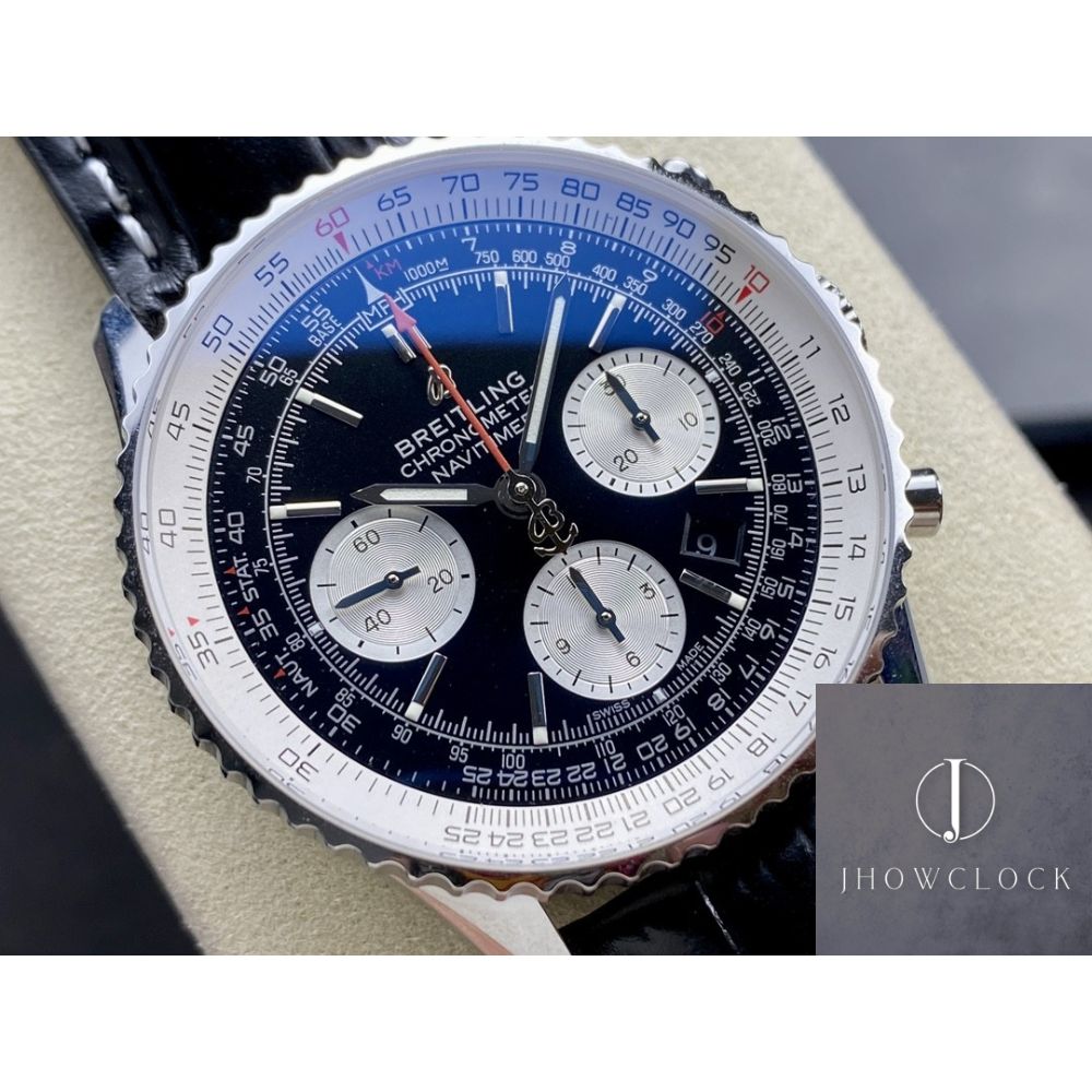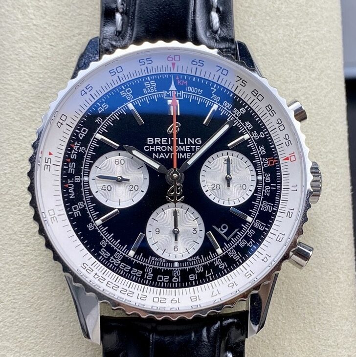 O tamanho da caixa de 43 MM oferece uma opção um pouco mais compacta em comparação com suas contrapartes de 46 MM, tornando-o uma escolha versátil para aqueles que preferem uma presença de pulso menos dominante sem sacrificar nenhum dos elementos de design icônicos do Navitimer.