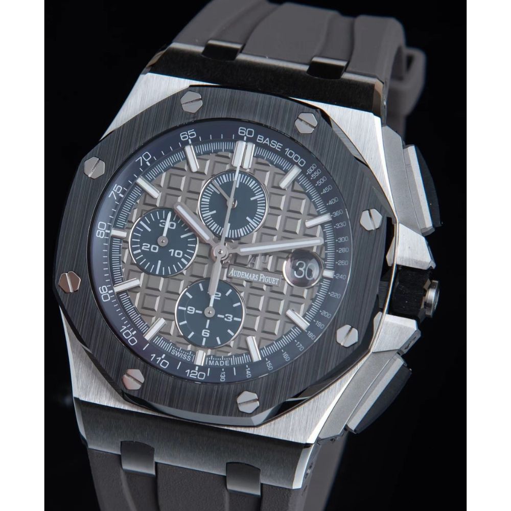 Delicie-se com a extraordinária réplica da APF Factory AP Royal Oak Offshore 26400 Beige Panda Plate relógio, onde a tecnologia inovadora e o artesanato meticuloso se unem para criar um relógio excepcional.