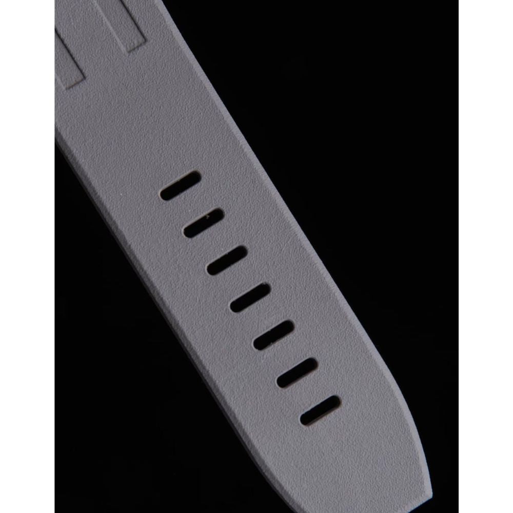 - Lente de safira de dupla face e pulseira de borracha natural: O espelho adota uma lente de safira de dupla face para visibilidade cristalina. O relógio é complementado por uma pulseira de borracha natural, proporcionando conforto e durabilidade.