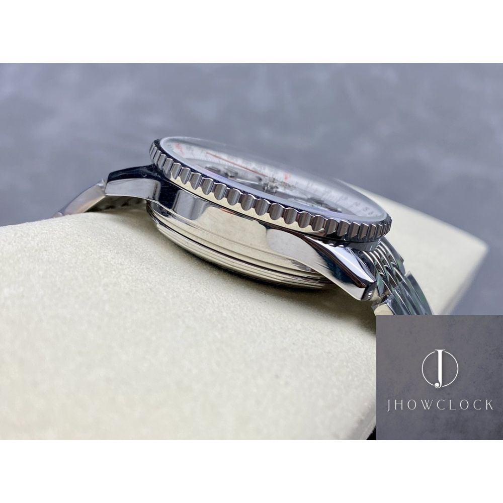 A versão com mostrador preto do Navitimer exala sofisticação e apelo atemporal. O mostrador preto profundo contrasta elegantemente com os submostradores prateados, oferecendo excelente legibilidade e uma estética refinada.