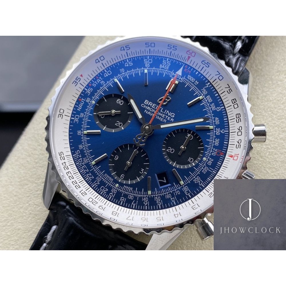Fábrica BLS - Breitling Navitimer AB0127211C1A1 Pulseira de couro com mostrador azul