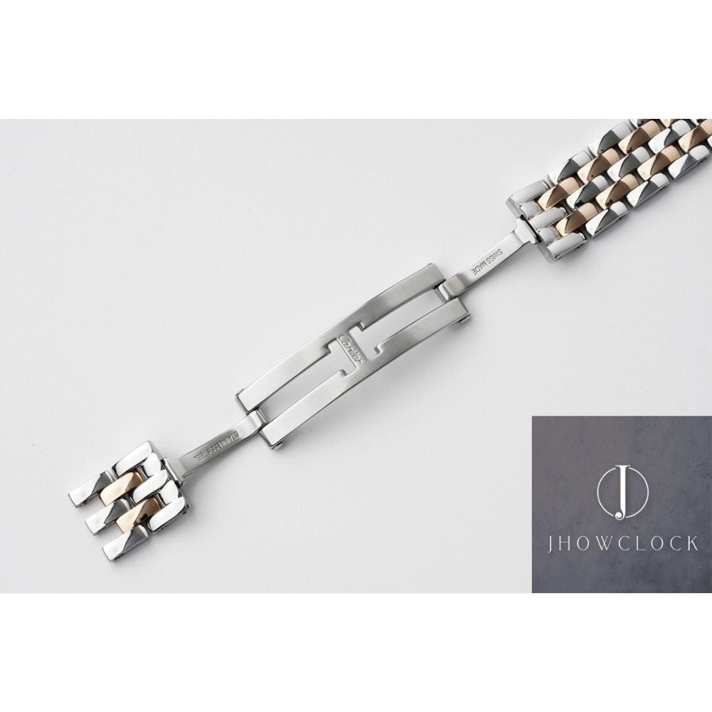 • Pontes da coroa para proteção adicional: A coroa é protegida por pontes de proteção em ambos os lados, proporcionando segurança adicional ao mecanismo da coroa, ao mesmo tempo em que aumenta a durabilidade geral e a sensação de luxo do relógio.