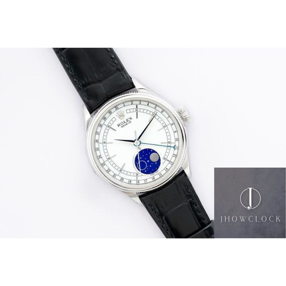 Através do artesanato requintado e design meticuloso da fábrica EW, esta réplica Rolex Cellini Moon Watch mostra tecnologia de relojoaria de alta qualidade e estilo clássico.
