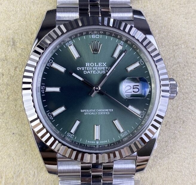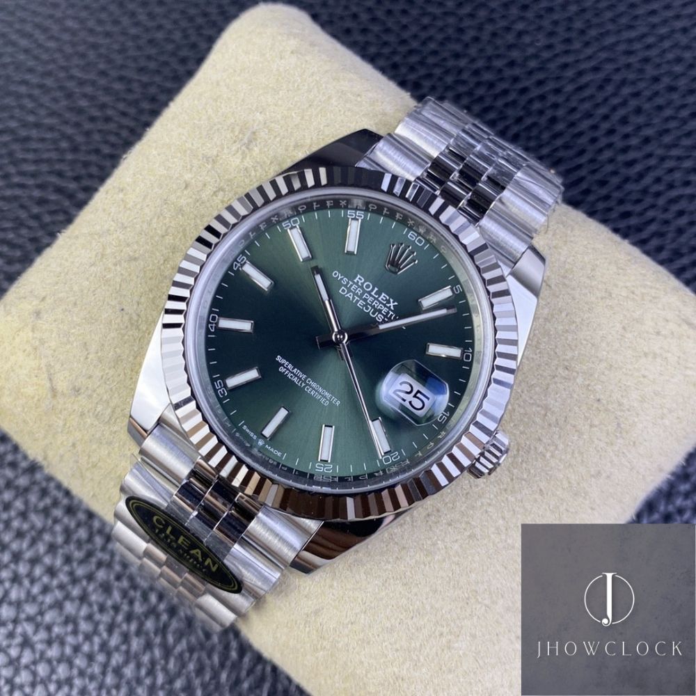 Bem-vindo ao Clean Factory Watches! Estamos orgulhosos de apresentar uma réplica Rolex Datejust 41 milímetros série, modelo m126334-0028, em verde menta ou verde oliva.
