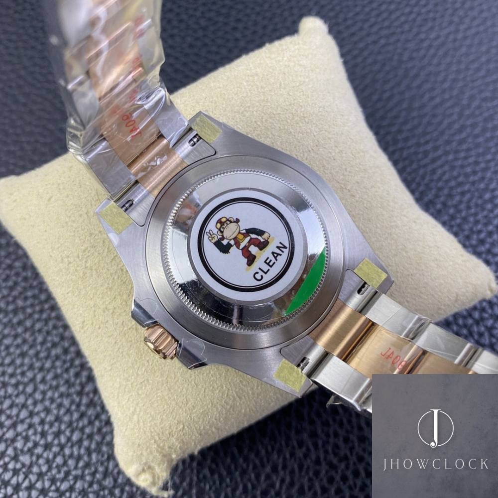 A aparência da caixa do relógio é toda feita de concha 904L, que restaura perfeitamente a forma geral da concha do GMT e corrige a sensação de rotação GMT. O cabo da coroa também apresenta o efeito de uma coroa em relevo. Usando o mesmo movimento 3285 do original. A parte da tampa inferior também é consistente com a original, polida e escovada, e a parte inferior da caixa é escovada. O encaixe da tampa inferior no gabinete é quase o mesmo. A lacuna entre a alça e o estojo pode ser comparada por si só.