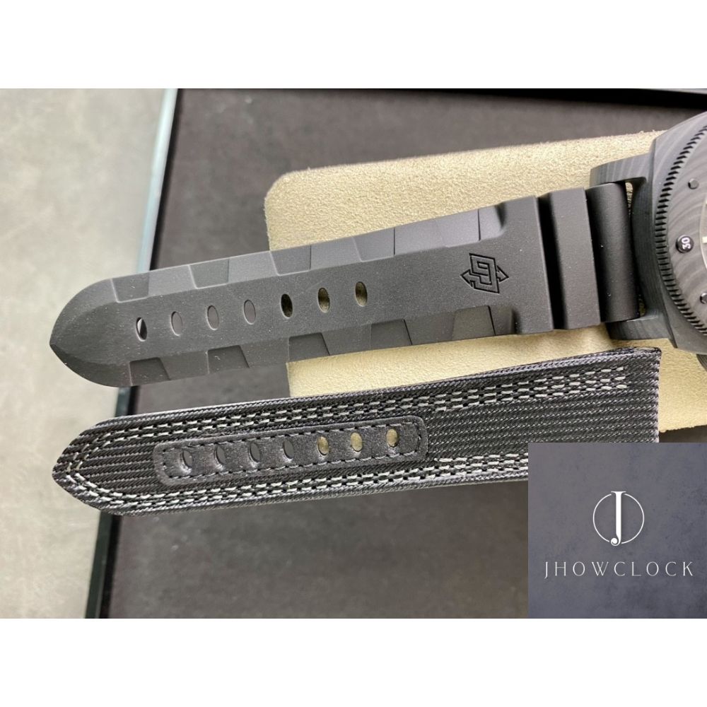 Material e design: Caixa feita de material composto de fibra de carbono Carbotech, bisel giratório no sentido anti-horário com escala, pulseira de borracha natural, design de camuflagem preta, material de fibra de carbono, com pontos luminosos e marcadores de horas.