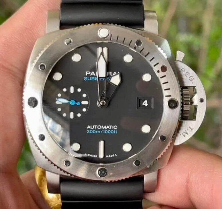 A icônica série Panerai Submersible é conhecida por sua robustez, e o PAM1229 não é exceção. Esteja você usando-o para mergulhar ou simplesmente exibindo-o em seu próximo evento, o design do relógio garante que ele resistirá ao teste do tempo. Os ponteiros e marcadores de grandes dimensões, revestidos com tinta luminosa, proporcionam excelente legibilidade em condições de pouca luz - um recurso que é particularmente útil para os entusiastas do mergulho.