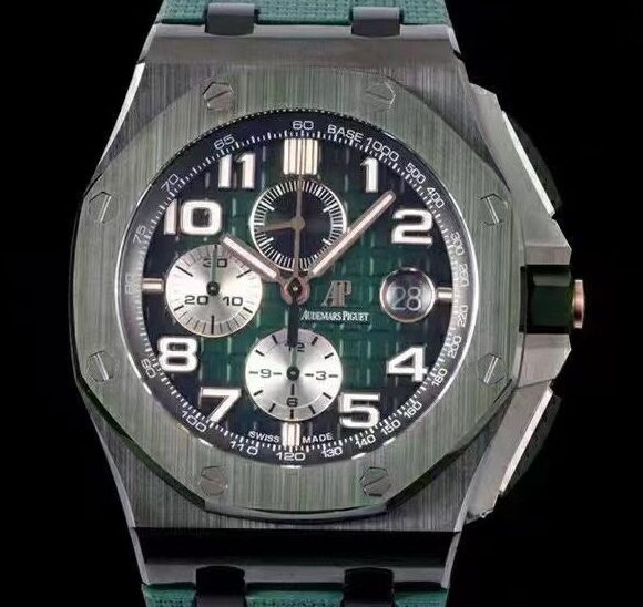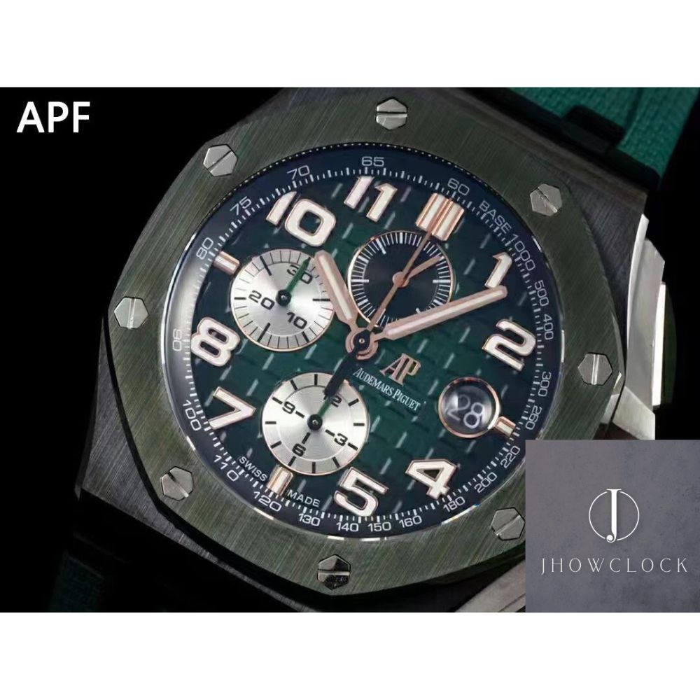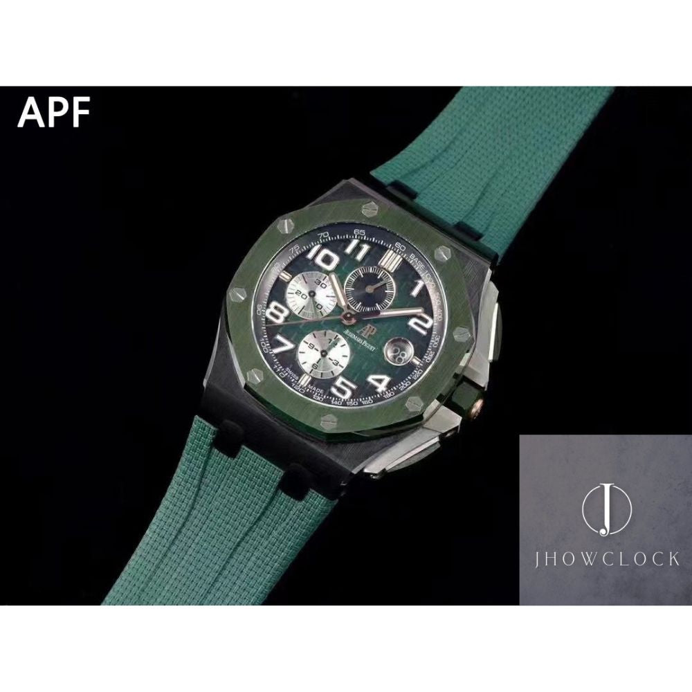 Experimente a surpreendente APF Factory AP Royal Oak Offshore 26405CE. OO. A056CA.01 Fumado Green Panda Plate réplica relógio, onde os avanços em tecnologia e dedicação à precisão resultam em um relógio extraordinário que sincroniza perfeitamente com o original.